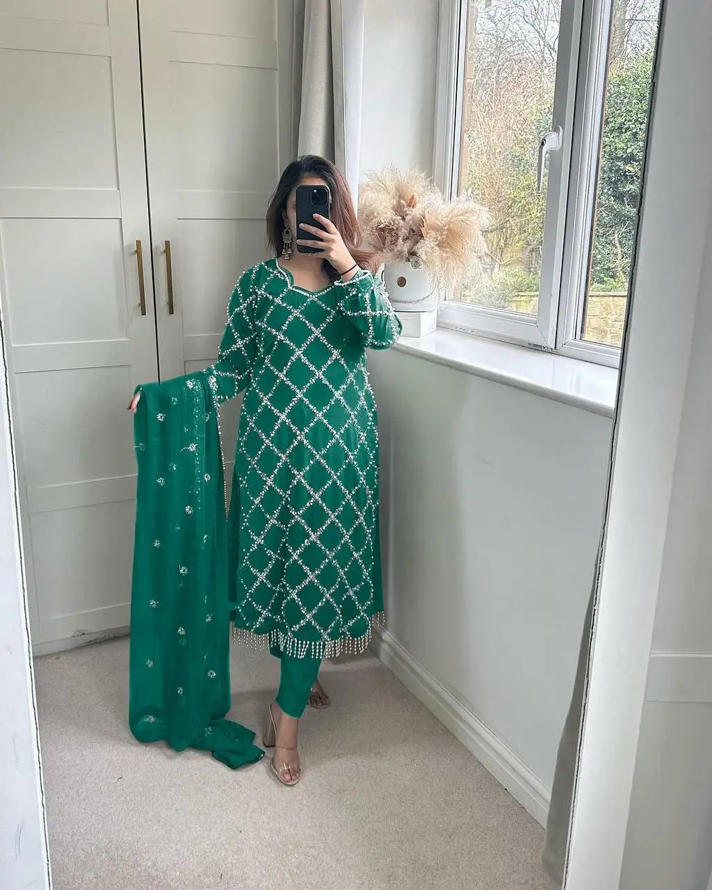 Women's Most Attractive Bollywood Style Wedding Festival Salwar Kameez Indian Dress with Dupatta for Parties Made Net Material